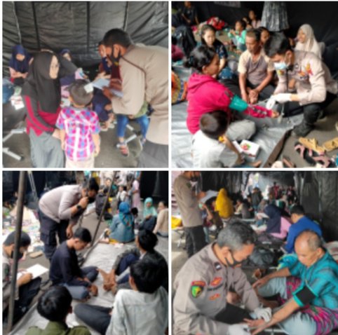 Jajaran Polres Subang yang di wakili oleh personel Sie Dokkes dan Samapta Polres Subang , memberikan layanan kesehatan bagi korban gempa dengan membuka Posko layanan kesehatan dan membawa bantuan kendaraan evakuasi , Selasa 22 November 2022 sekitar pukul 07.00 WIB.