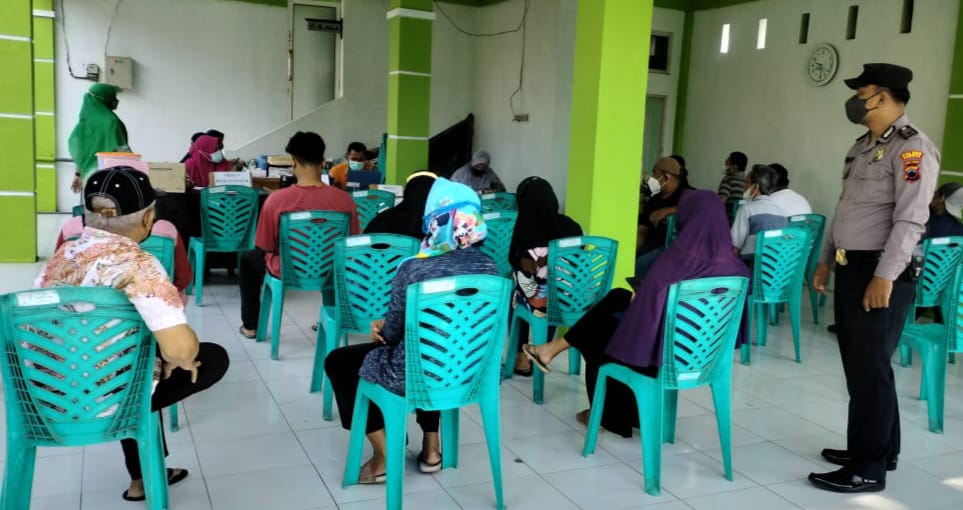 KENDAL | Dalam upaya percepatan vaksinasi nasional di masa PPKM Level 2, Polsek Cepiring kawal vaksinasi bagi warga Kecamatan Cepiring di ruang Aula Puskesmas Cepiring , Sabtu (9/4/2022).