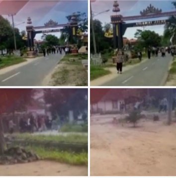 LAMPUNG TENGAH | Beredar viral di media sosial memperlihatkan sekelompok massa menghadang petugas kepolisian saat sedang pengamanan lokasi pembakaran aset PT Gunung Aji Jaya.