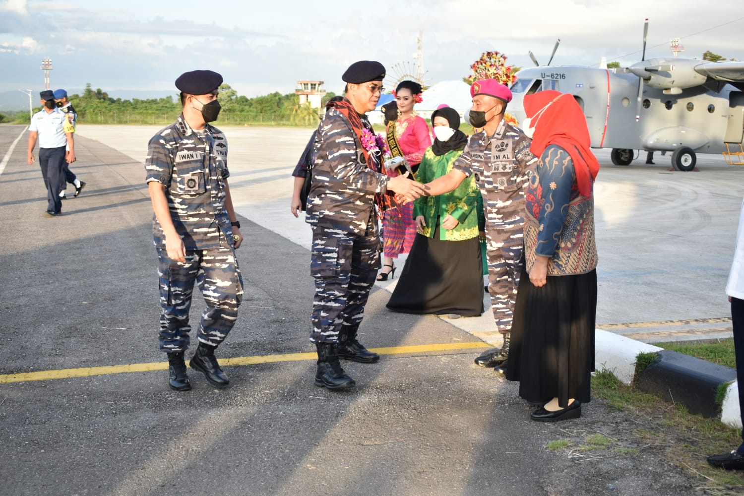 Saat tiba di Bandara Lanud Haluoleo Pangkoarmada ll disambut dengan tradisi adat yakni tarian penyambutan dan menerima Ikat Kepala dan pengalungan Syal Batik sebagai tanda selamat datang.