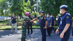MAKASSAR | Wakil Komandan (Wadan) Lantamal VI Kolonel Marinir Marsono, S.A.P., menerima kunjungan Direktur Jenderal (Dirjen) Pengawasan Sumber Daya Kelautan dan Perikanan (PSDKP) Laksmana Muda (Laksda) TNI Adin Nurawaluddin, M. Han., beserta rombongan di Mako Lantamal VI, Kamis (17/02/2022).