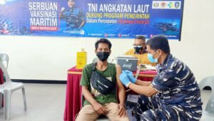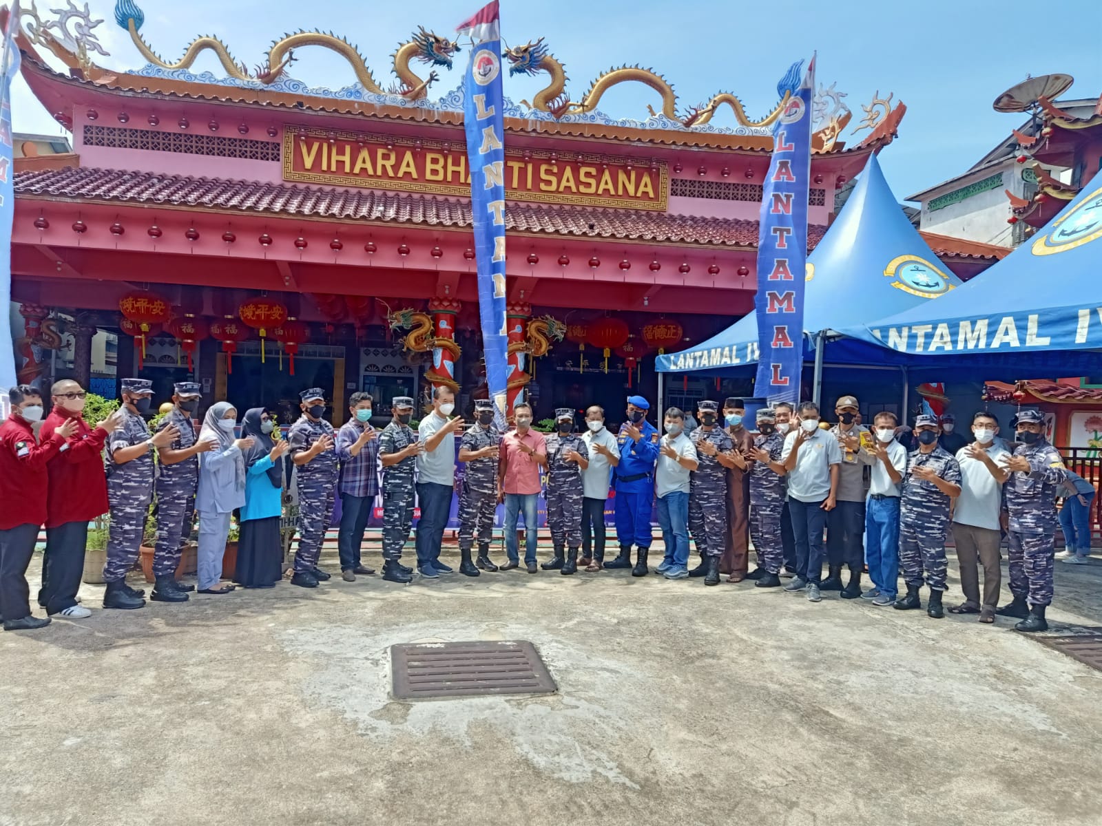 TANJUNGPINANG | Komandan Pangkalan Utama TNI Angkatan Laut (Danlantamal) IV Laksamana Pertama TNI Dwika Tjahja Setiawan, S.H., M.H., M.Tr.Opsla dalam hal ini diwakili Wakil Danlantamal IV Kolonel Marinir Andi Rahmat M., menghadiri Serbuan Vaksinasi Maritim di Vihara Bhakti Sasana, Jalan Ps. Berdikari, Kijang Kota, Bintan – Kepri, Rabu (13/04/2022).