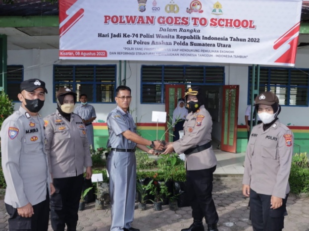 ASAHAN | Waka Polres Asahan Kompol Sri Juliani Siregar SH melaksanakan kunjungan SMP N.6 Kisaran Jalan Latsitarda Kel. Kisaran Naga Kec. Kisaran Timur Kab. Asahan dalam rangka peringatan Hari Jadi Polwan Ke 74 Tahun 2022, Senin (08/8/2022).