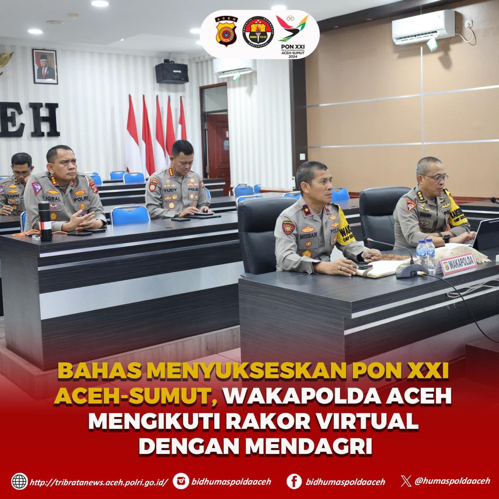 INFOINDONESIAINEWS.COM | ACEH – Wakapolda Aceh Brigjen Pol. Misbahul Munawar, S. H, mengikuti rakor yang berlangsung secara virtual dipimpin Mendagri RI Muhammad Tito Karnavian dari Jakarta, pada Jum’at (30/8/2024) pagi.
