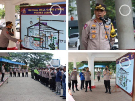 Selesai apel dilanjutkan dengan Taktikal Wall Game ( TWG) pelaksanaan simulasi pengamanan aksi unjuk rasa oleh Polres Lebak.