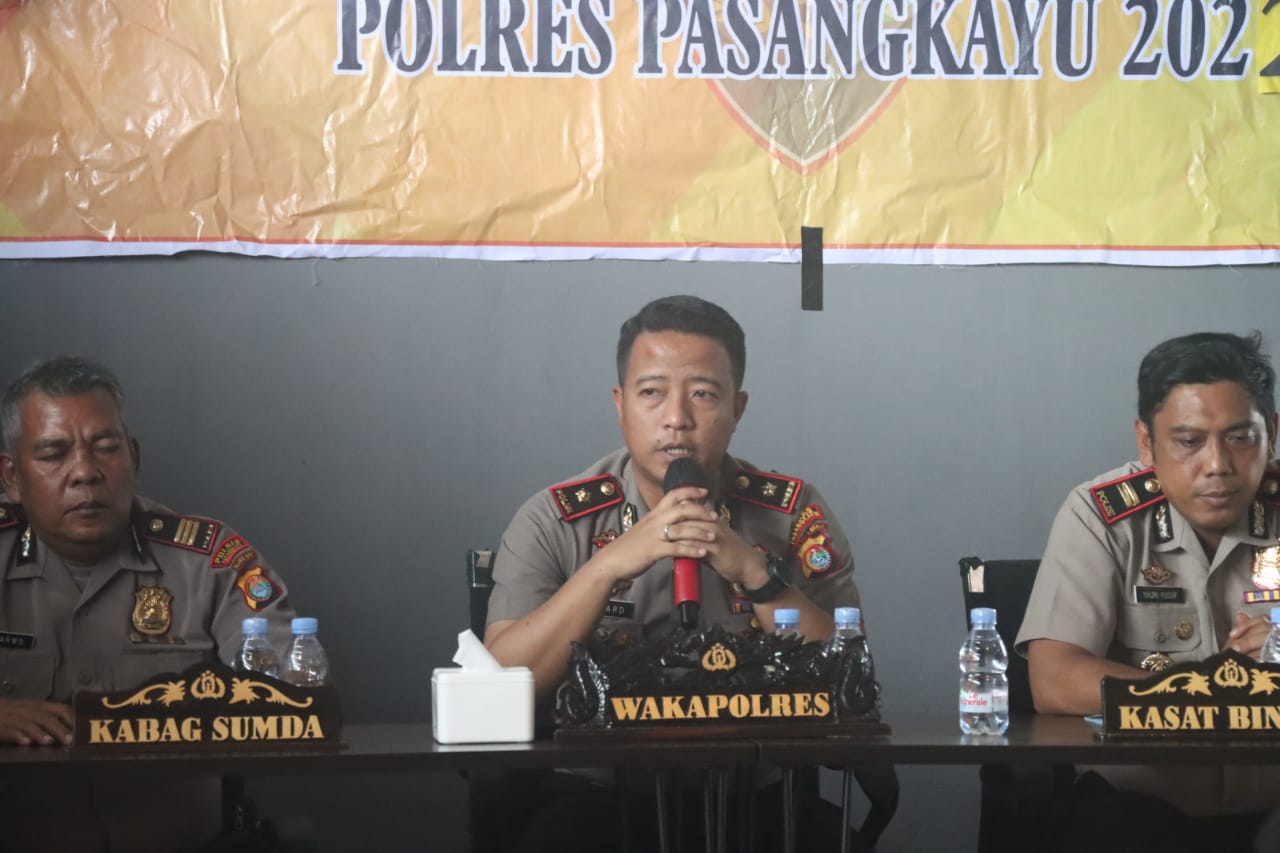 POLRES PASANGKAYU | Wakil Kepala Kepolisian Resor Pasangkayu Kompol Eduard Steffry Allan Telussa S.I.K M.Si memimpin langsung analisa dan evaluasi (Anev) pelaksanaan tugas Bhayangkara Pembina Keamanan dan Ketertiban Masyarakat (Bhabinkamtibmas) di Wilayah hukum Polres Pasangkayu.