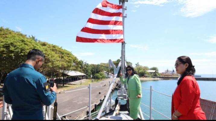 MAKASSAR | Badan Kerjasama Organisasi Wanita (BKOW) Sulawesi Selatan mengunjungi KRI Malahayati – 362 yang sedang sandar di Dermaga Layang Mako Lantamal VI Makassar, Sabtu (13/08/2022).
