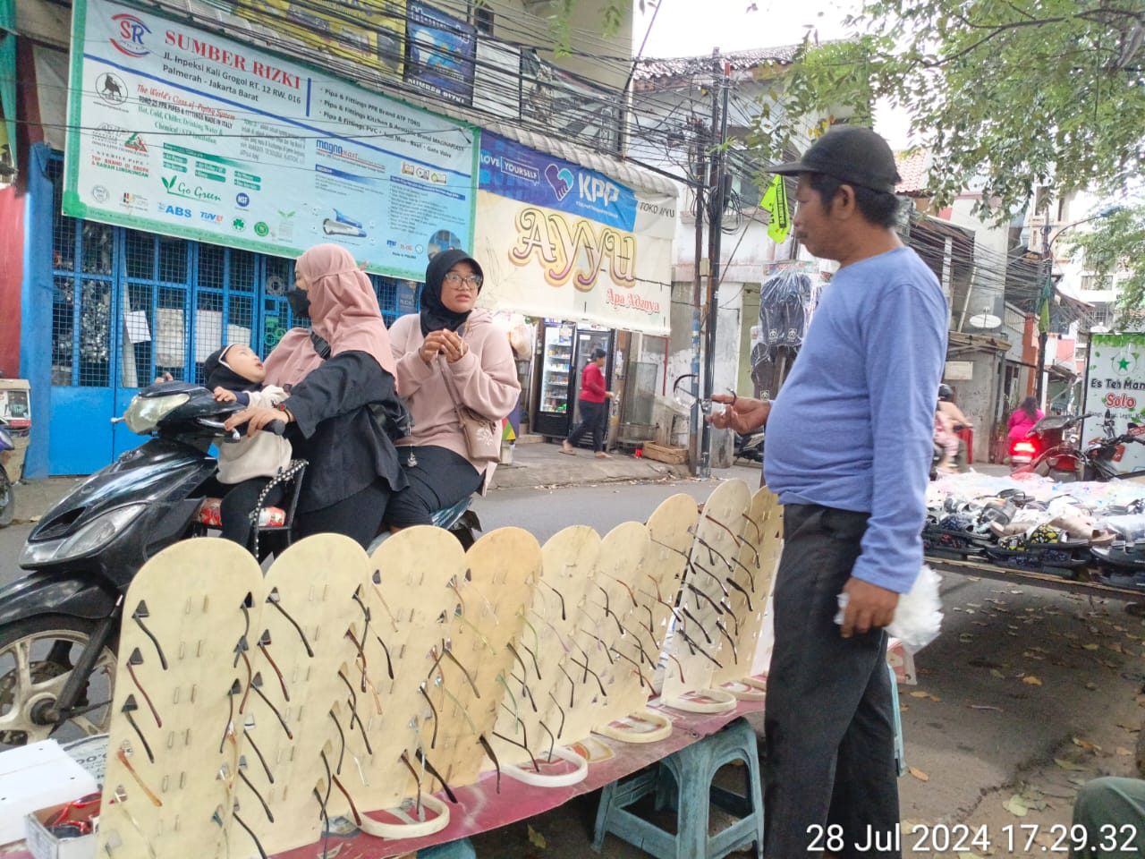“Di Jakarta sebelumnya menggeluti mata dagangan yang lain. Namun, akhirnya saya lebih fokus menjual kacamata baca (Plus) dan kacamata miop (minus) yang umumnya juga sudah banyak dibutuhkan oleh anak-anak muda.” Kata Yal Amri, Minggu (28/7) sore di pinggir kali Grogol, Jl. Inspeksi Kali Grogol, Palmerah, Kecamatan Palmerah, Jakarta Barat.